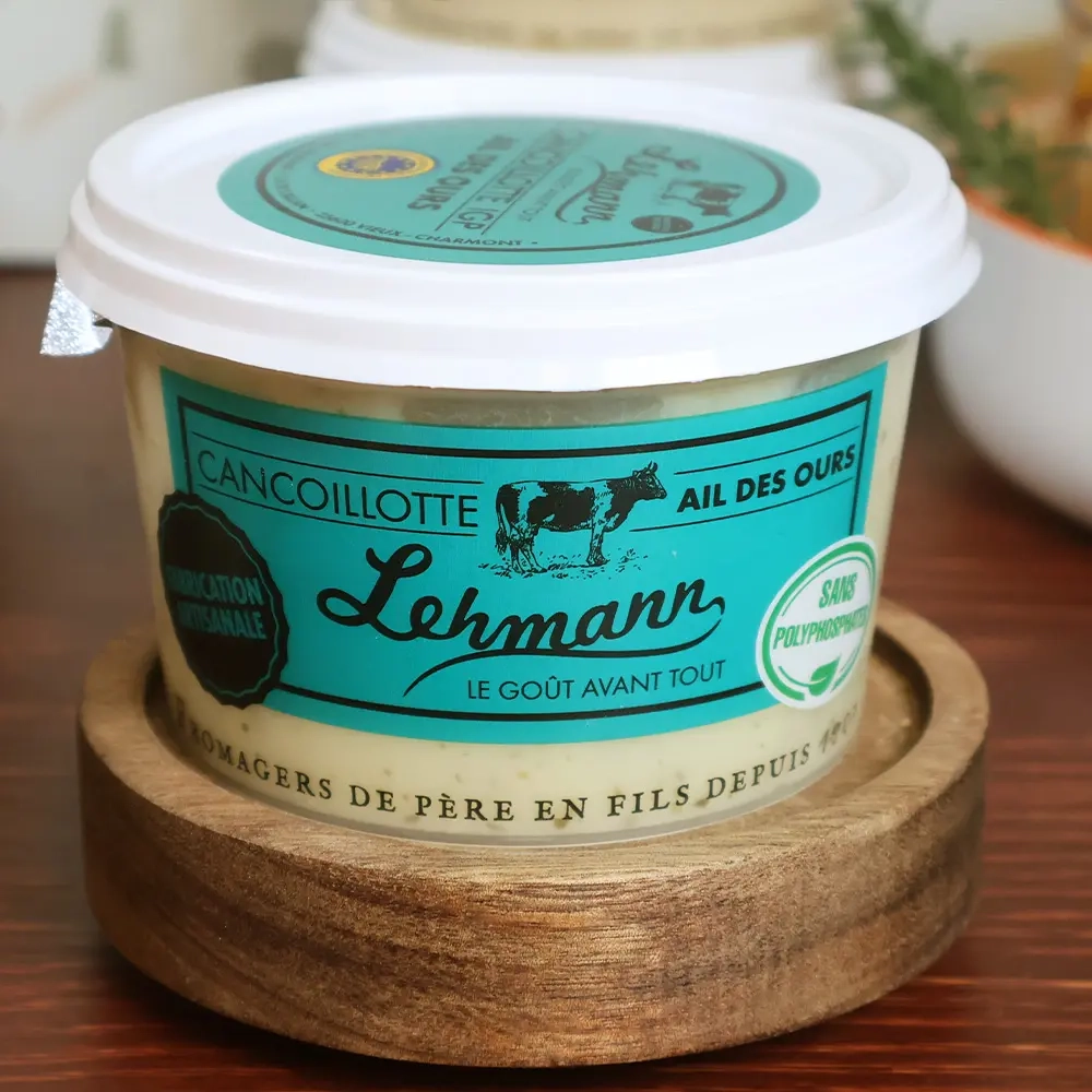 Ce qui distingue la Cancoillotte à l’Ail des Ours, c’est son équilibre parfait entre la finesse de la base fromagère et la vivacité verte de la plante. En bouche, la texture reste fidèle à la tradition : souple, légère, presque fluide. Mais au palais, c’est une nouvelle histoire qui commence. L’ail des ours, reconnaissable à ses notes végétales, herbacées et légèrement aillées, vient réveiller la douceur lactée d’un fromage humble et authentique.
