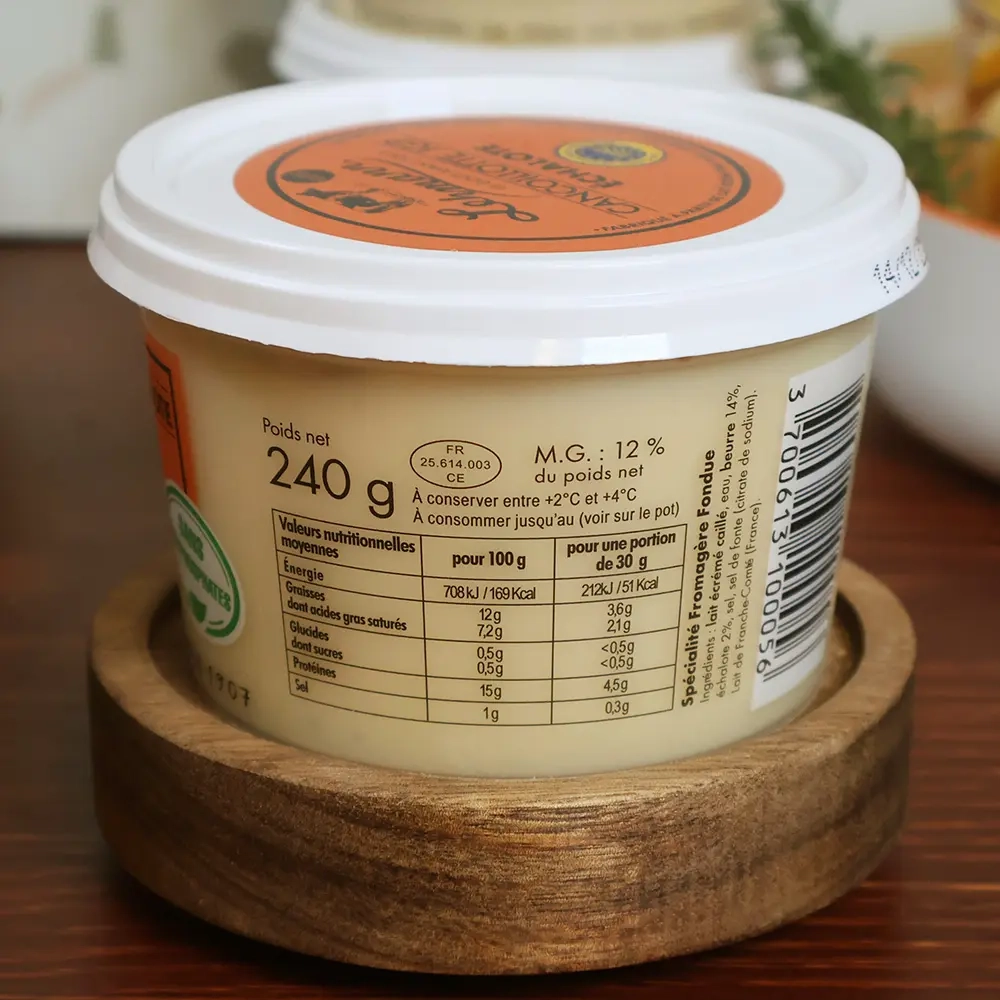 La Cancoillotte à l'Échalote est une spécialité franc-comtoise subtile et savoureuse. Elle marie la texture fondante de la cancoillotte traditionnelle à la douceur aromatique de l’échalote. Ce fromage fondu artisanal se distingue par sa légèreté, son goût délicatement relevé et son authenticité. Une création simple, mais raffinée, à savourer chaude ou froide, en tartine ou en cuisine.