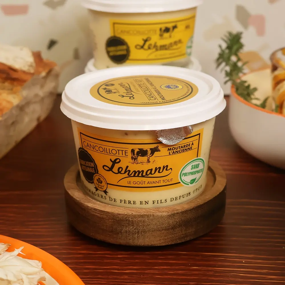 Symbole culinaire du Jura, la cancoillotte est appréciée pour sa texture fondante et son goût léger, ce qui en fait une base idéale pour accueillir des parfums variés. Dans cette version, l’ajout de moutarde apporte du caractère et une touche relevée, tout en respectant l’équilibre des saveurs.