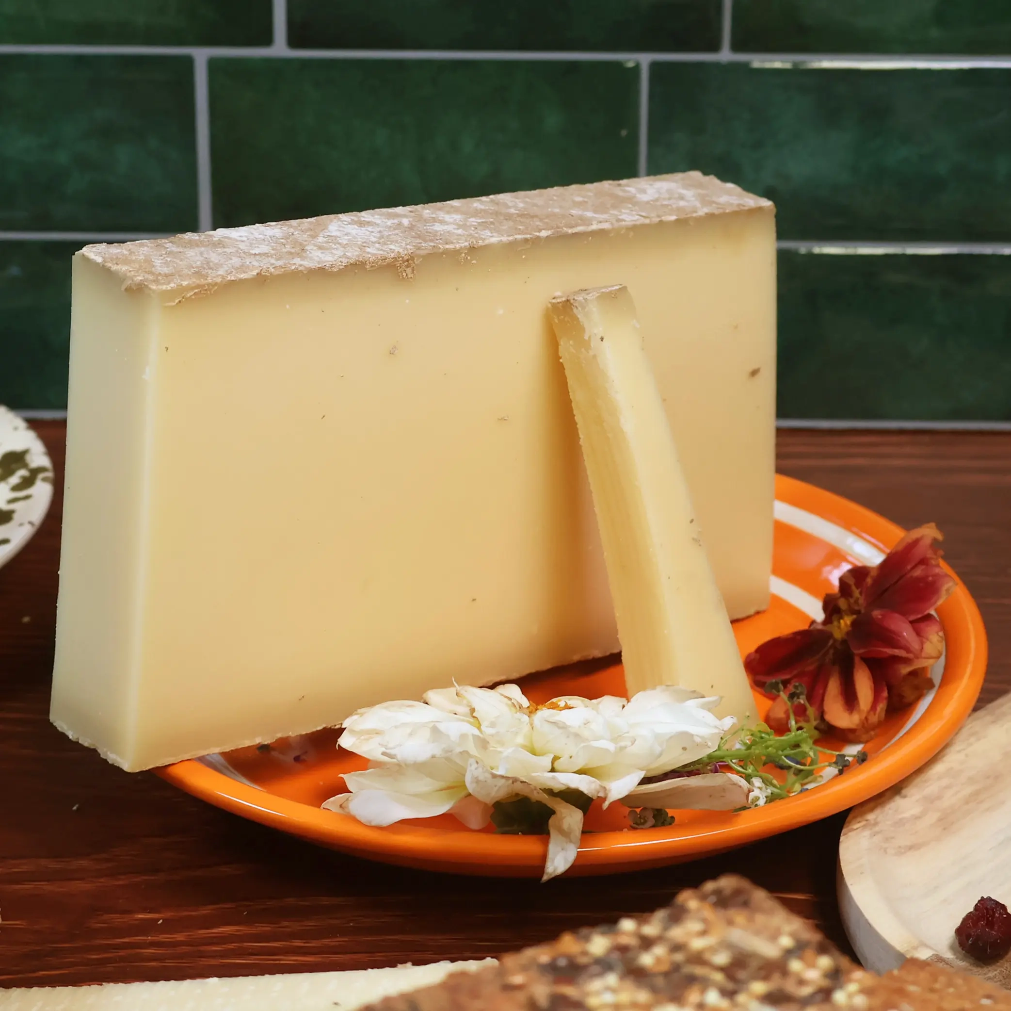 La Meule du Jura Fruité est une merveille fromagère venue tout droit des plateaux jurassiens. Derrière sa pâte dorée et fondante se cache un savoir-faire artisanal transmis de génération en génération. Élaborée à partir des surplus de lait à Comté du fait des quotas du nombre de meule de Comté en raison de l'AOP de ce dernier, le lait utilisé est un lait cru de vaches montbéliardes et simmental, cette meule généreuse séduit par sa richesse aromatique, sa texture souple et son goût délicatement fruité. Véritable reflet de son terroir, elle incarne la tradition fromagère de Franche-Comté.