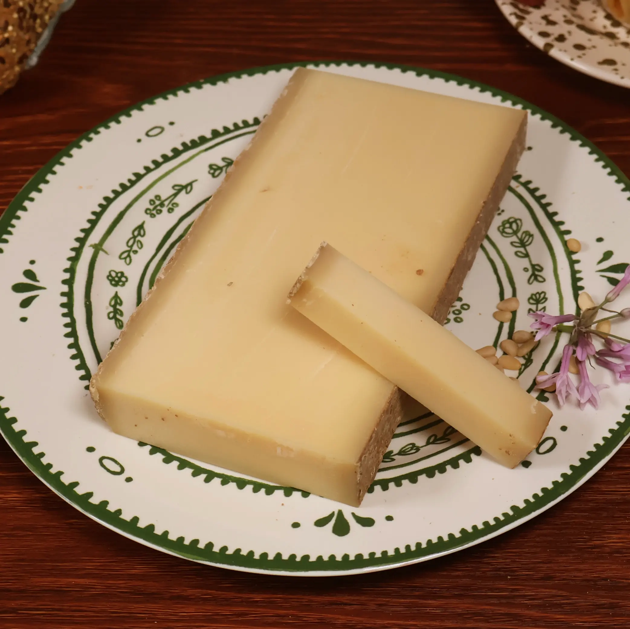 Ce qui distingue la Meule du Jura Grande Réserve, c’est sa longue maturation de 22 mois dans des caves fraîches et humides, un environnement idéal pour sublimer les fromages de garde. Durant cet affinage lent, chaque meule est retournée, frottée et soignée à la main, sans traitement thermique ni artifice. Le résultat ? Une croûte épaisse, légèrement ambrée, et une pâte jaune soutenu, à la texture cristalline.