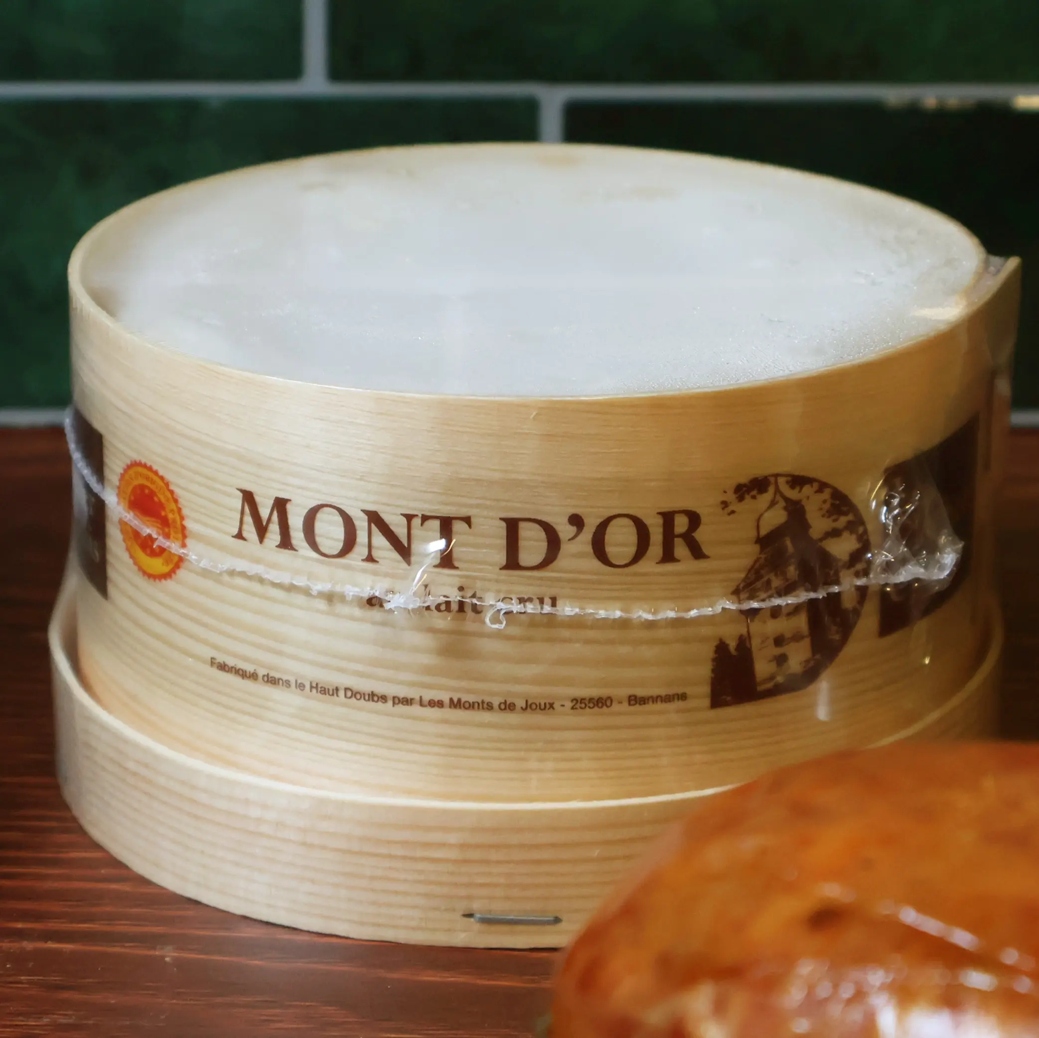 Fabriqué exclusivement à partir de lait cru de vache Montbéliarde, le Mont d’Or bénéficie d’une Appellation d’Origine Protégée (AOP) qui encadre strictement sa production. Chaque meule est cerclée d’une sangle en épicéa, placée autour de sa croûte, qui confère au fromage son parfum caractéristique. Cette sangle permet aussi de maintenir sa pâte onctueuse et de préserver son identité visuelle si particulière.