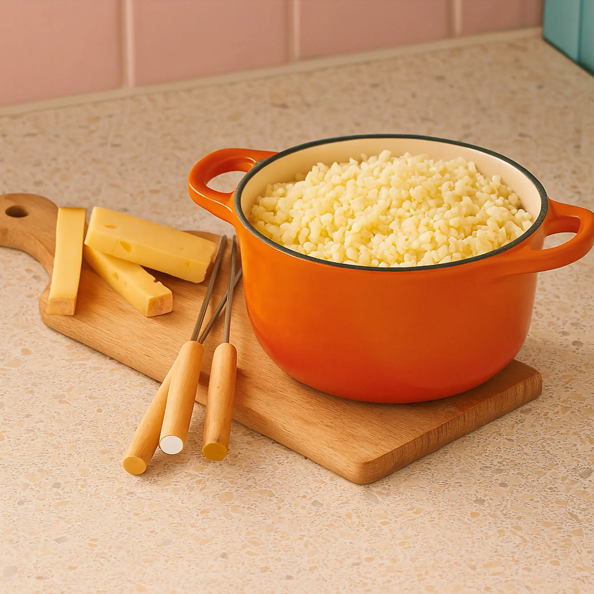 L’un des atouts majeurs de la Fondue Jurassienne est sa simplicité. Il suffit de frotter le caquelon avec une gousse d’ail pour en parfumer subtilement le fond, puis de faire fondre doucement les fromages avec le vin blanc, en remuant sans cesse pour obtenir une texture parfaitement homogène et onctueuse. La cuisson lente permet aux saveurs de se mêler harmonieusement, garantissant une fondue crémeuse et savoureuse du début à la fin.
